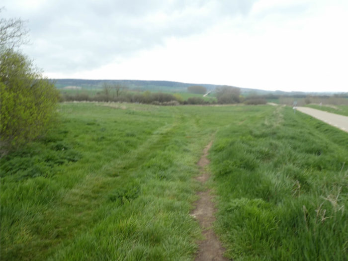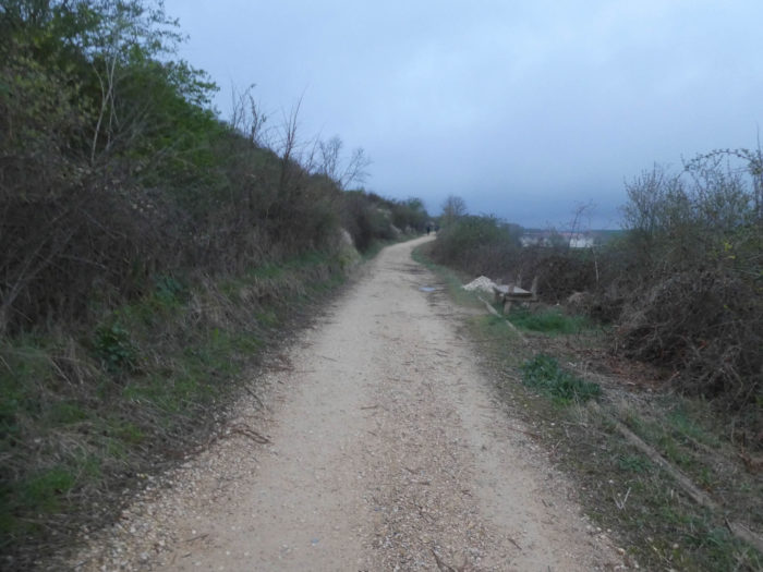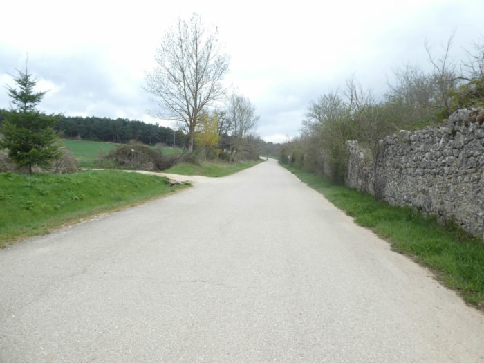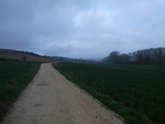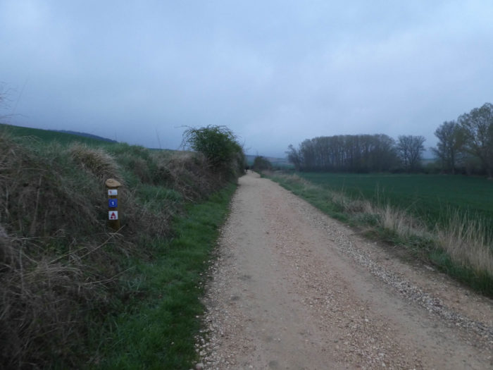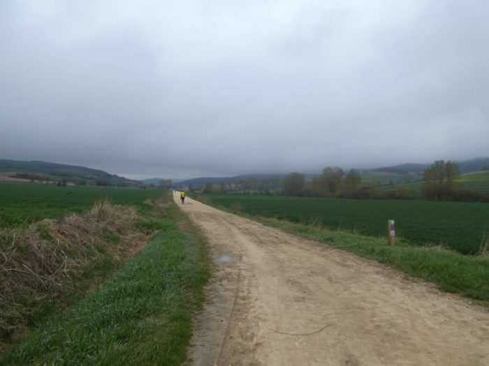 | Sometimes the pathway is a little stonier. Not a tree here again, only small bushes along withered hedges. They have deloused the country to the bone. One wonders again in which universe the pilgrims of the Middle Ages traveled. No doubt there were trees. |