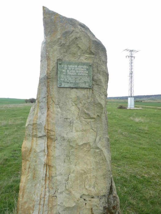 The pathway then reaches Pedraja Pass (Puerto de Pedraja), Here there is a stele. 1936, the date speaks for itself. Above the stela a dove, symbol of peace. There, at the end of the road, the Francoists shot and threw in the ditch 300 republicans, desirous of freedom. This mass grave was erected by the families of the missing. In Franco’s day, people came here scared to death in memory. Then, in 1976, at the death of Franco, the families began to progressively organize at All Saints’ Day a sort of pilgrimage, with a modest cross that was planted, but that the old Franco supporters tore off every year. Then times passed and Spain calmed down. So, families had this stele erected in 2011, which tells the sordid story.