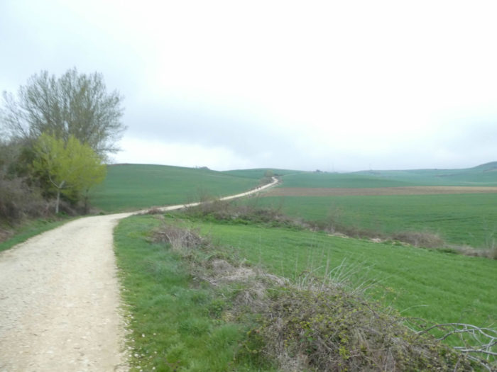| Further afield, the pathway deviates from the N-120 road, flattens along the hedges. |