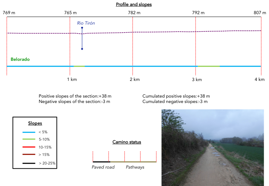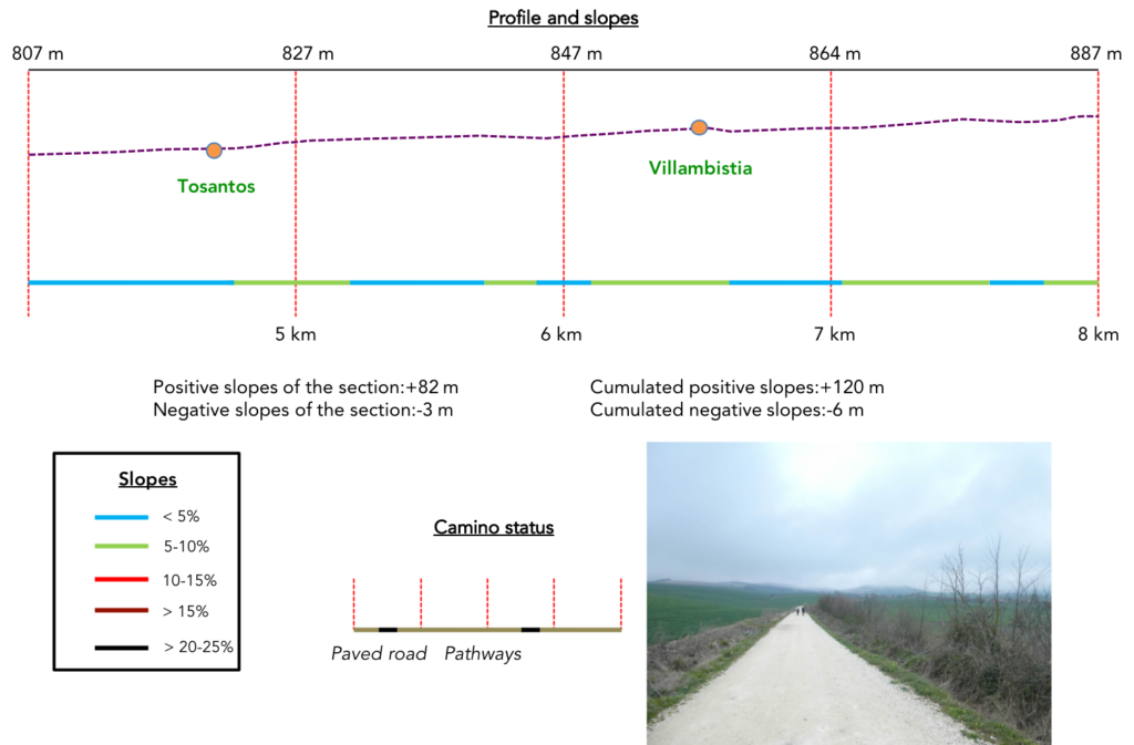 We divided the course into several sections to make it easier to see. For each section, the maps show the course, the slopes found on the course, and the state of the Camino. The courses were drawn on the “Wikilocs” platform. Today, it is no longer necessary to walk around with detailed maps in your pocket or bag. If you have a mobile phone or tablet, you can easily follow routes live.
