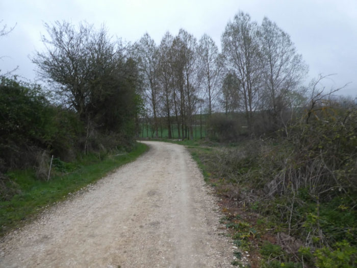 | Sometimes the pathway is a little stonier. Not a tree here again, only small bushes along withered hedges. They have deloused the country to the bone. One wonders again in which universe the pilgrims of the Middle Ages traveled. No doubt there were trees. |
