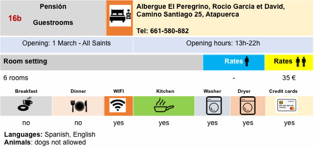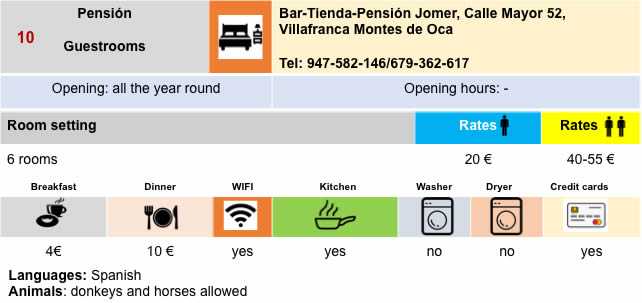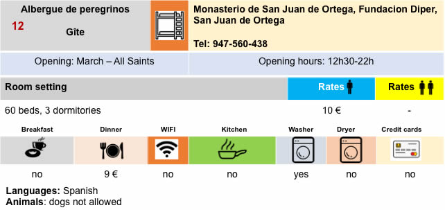 | The housing capacities here are limited. The village, especially the hospice of pilgrims forming part of the monastery, can accommodate only about seventy pilgrims. The others, who have not had a chance or who have not booked go further on the track, to Agués or Atapuerca. |