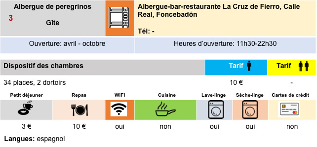 | Vous n’allez certainement pas programmer vos prochaines vacances ici. Il vous faudra organiser vos loisirs, si, comme certains l’ont fait, ont pris pour le lendemain une longueur d’avance sur leurs camarades qui se sont arrêtés plus bas, à Rabanal del Camino. |
