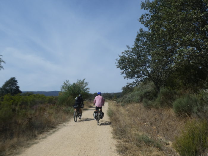 | En dessous, sur la route, vous ne voyez pas de véhicules, mais les cyclistes du Chemin de Compostelle qui foncent, le nez dans le guidon. |